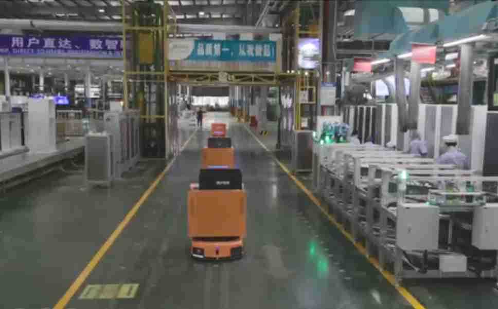 为车载冰箱物流配送打造的智能解决方案,,,包含产中物流通过潜伏举升AMR搬运至线边,,,产后成品物流智能仓储,,,,流程包含产中物流智能齐套入库,,线边安灯叫料AMR智能配送至线边,,,成品入库、、、、出库,,,,通过无人堆高车机器人,,,,智能仓储管理替代人工作业管理,,实现更高存储、、、、更高效率、、、、更具柔性化的解决方案。。。。