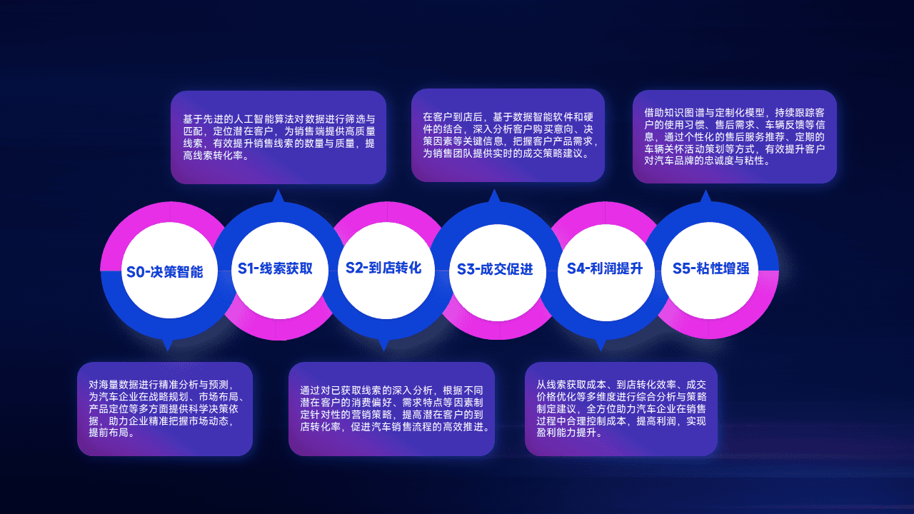通过拓宽潜在客户来源、、、、优化线索分配并提高到店转化率,,,,以增强销售效率。。同时,,,,利用线索数据不断优化分析模型,,,有效提升转化率,,,,扩大营销影响力。。。